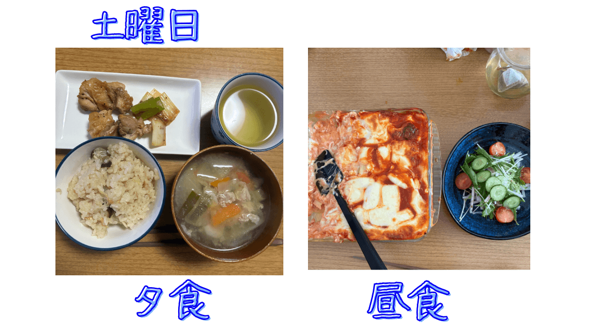 昼食:ラザニア(先週の作り置き利用で食費昼食代に含ませません)サラダ