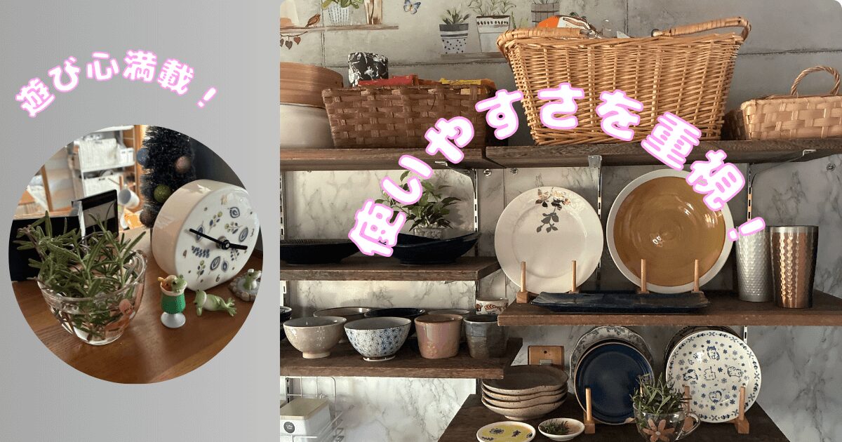 私は見た目を重視します。その反面見えない場所(引出し・食器棚の中)は雑でも見えないから「まぁ、いっか!」と納得してしまうタイプなのです。