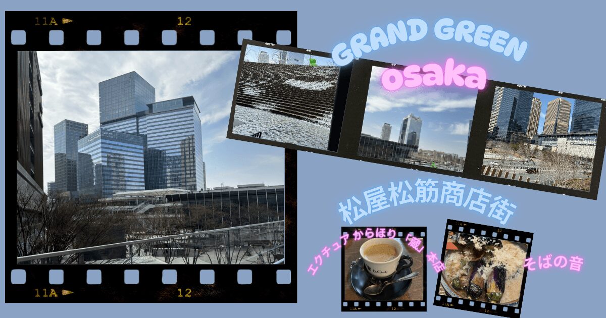 大阪の街案内と言ったら4つ下の妹にお任せ。「うめきたは庭やねん!」と豪語するくらい詳しい…早速、うめきたプロジェクトの2期区域であるグラングリーン大阪に。必死に妹の後をついて行き、スムーズにたどり着く。コンクリートのビルとビルの合間に芝生の公園が広がり、大阪市民や観光客の憩いの場となっていた。あと2,3年もしたら、植樹や植物が咲き誇りすごい事になりそう…